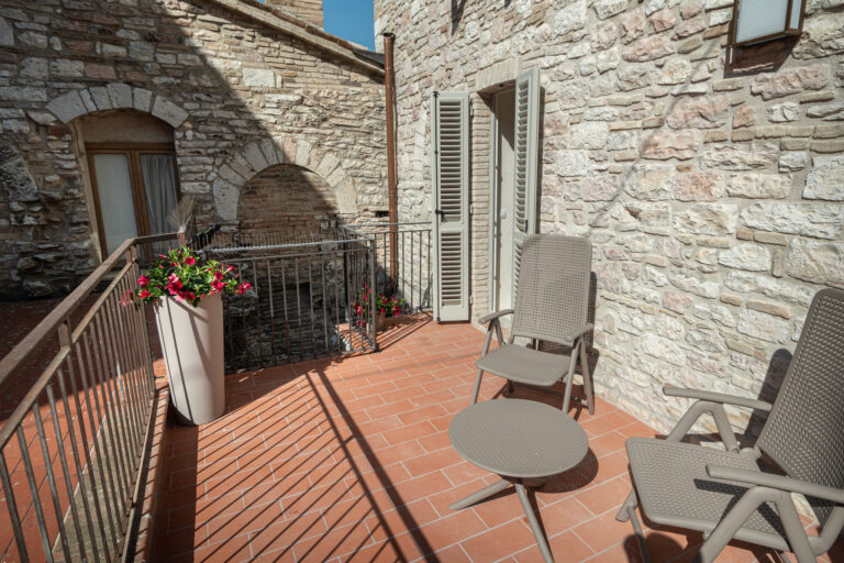 The refined environments of Xenios await you in the center of Assisi for an exclusive stay.